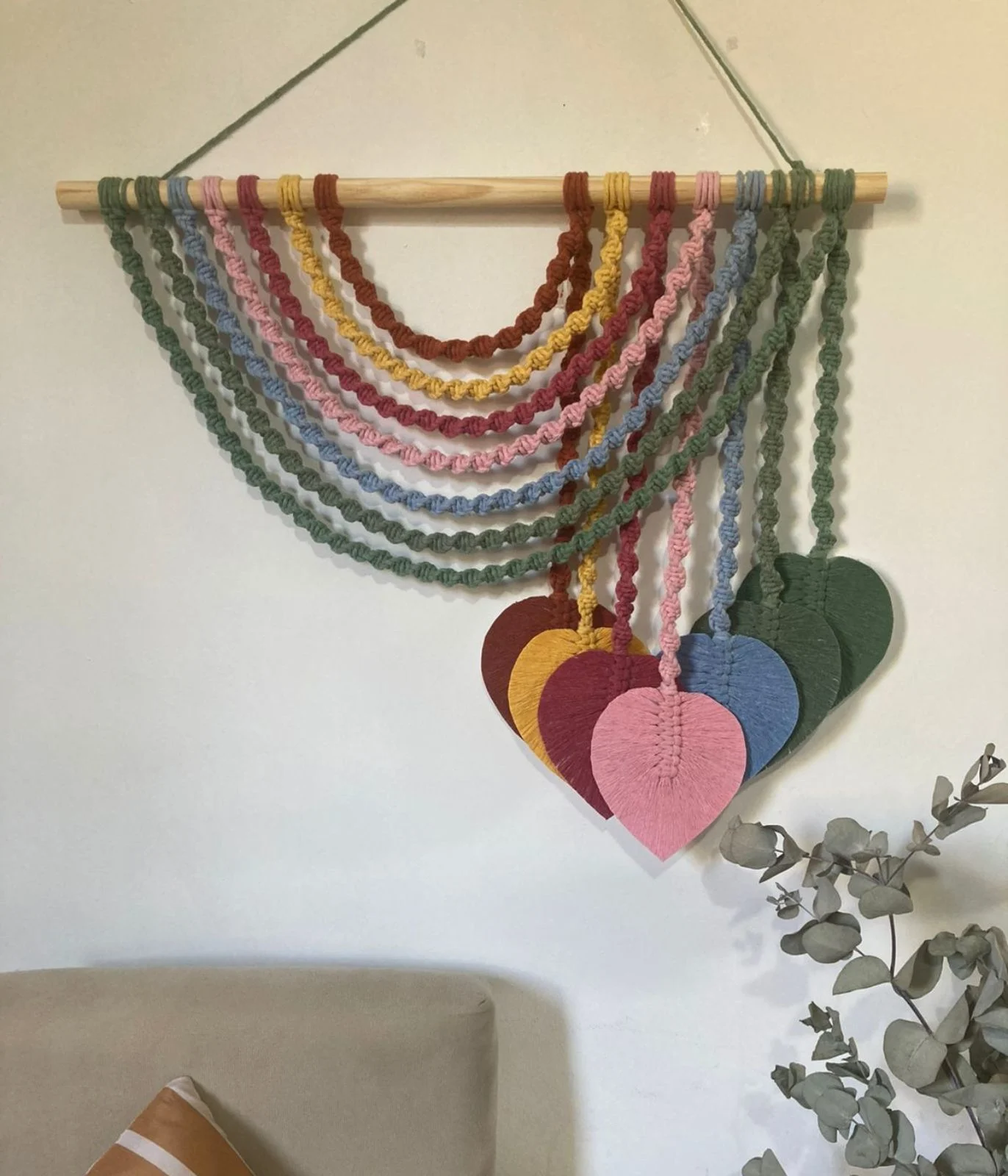 Dê vida e cor às suas paredes com o nosso Painel Arco-Íris. Produzido artesanalmente com barbante ecológico, esta peça une a responsabilidade ambiental com a alegria do design lúdico.