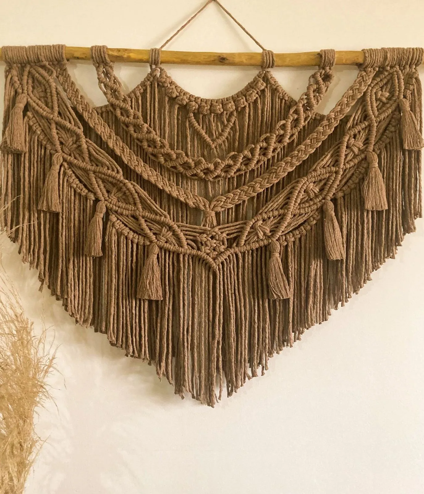 Traga a essência da natureza e o conforto visual dos tons neutros para o seu lar com o Painel Macramê Terra. Uma peça ampla, com 1 metro de largura, desenhada para ser o centro das atenções na sua sala ou quarto.